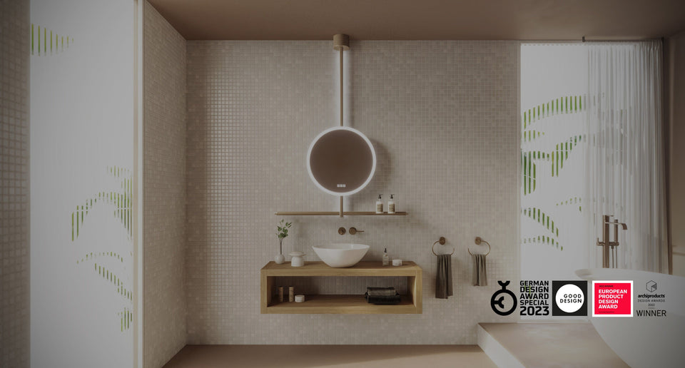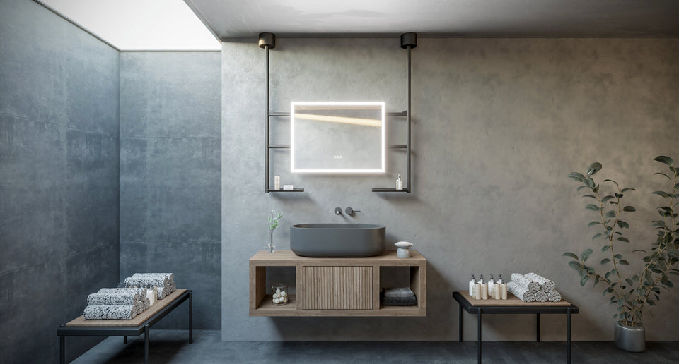 Grazie ai pulsanti touch screen presenti sulla specchiera è possibile accendere e spegnere tutte le fonti luminose, scegliere la temperatura colore e attivare la funzione anti appannamento.